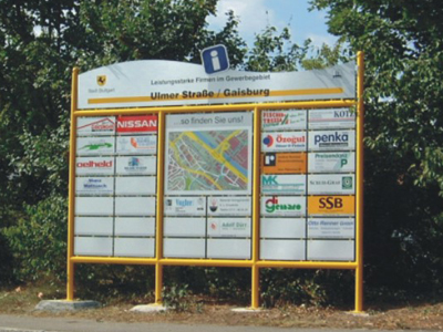 Übersicht mit Lageplan und einzelne Firmenwegweiser im